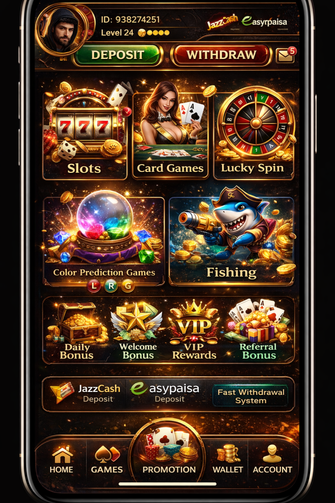 The n999 Game app is made for players who want to enjoy casino games at home or anywhere. It uses high security to protect users’ data and money. Payments can be done with EasyPaisa or Jazz Cash, which are trusted systems in Pakistan. The app also gives daily bonuses and weekly offers to keep players interested. Many players have joined n999 Game because it offers good rewards and a great gaming experience.